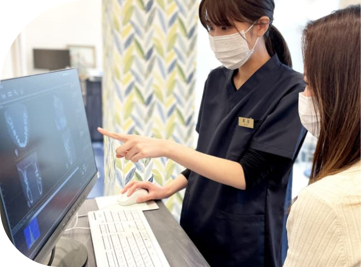 ヨルソラ歯科では、すべての患者様に対してじっくりと時間をかけて丁寧な説明を行い、ご納得していただいた上で、最適な治療を行っております。
